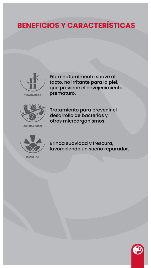 Tela con tecnología de enfriamiento avanzada que regula la temperatura, manteniéndote fresco y cómodo durante toda la noche, sin importar el clima.